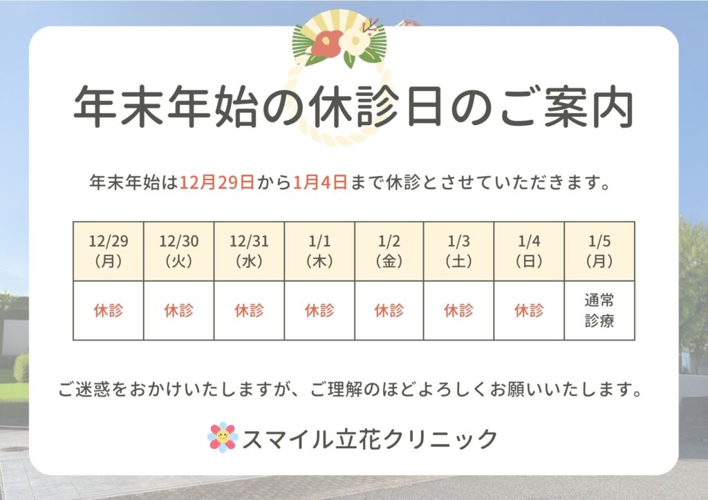年末年始のお知らせ 2025年12月12日 未分類 このページをシェア Facebook Twitter 関連記事 12月外来医師担当表 10月14日(火)午後診臨時休診のお知らせ 臨時休診のお知らせ 10月14… インフルエンザワクチン接種開始のお知らせ インフルエンザワクチン接種開始…