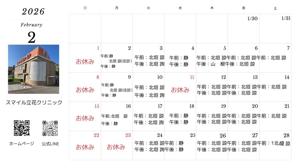 2月外来医師担当表 2026年1月29日 未分類 このページをシェア Facebook Twitter 関連記事 1月外来担当医表 インフルエンザワクチン接種開始のお知らせ インフルエンザワクチン接種開始… 海外の患者様へのお知らせ 当院では、海外の方にも自費診療…